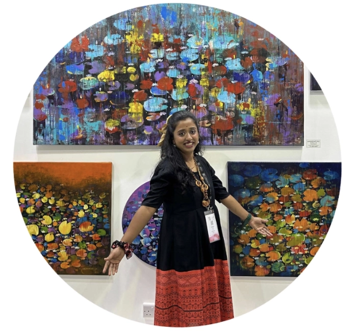 Arundhati Pise is a contemporary artist whose work captures the meditative beauty and quiet strength of nature through her signature interpretations of the lily pond. Deeply connected to her surroundings, she transforms the familiar landscape into an exploration of light, color, and texture — a visual dialogue between serenity and movement.
