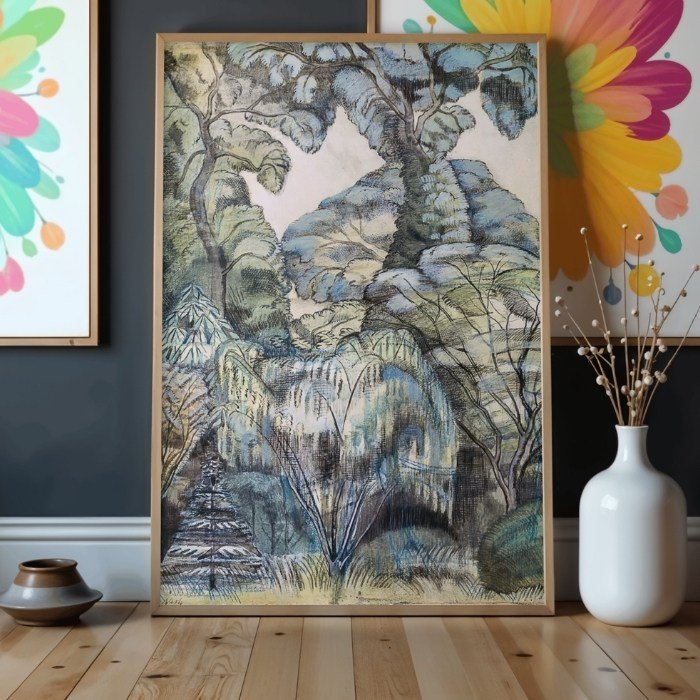 Step into a dreamlike landscape with Tree in Bird’s Garden, one of Paul Nash’s most evocative works. Known for his visionary approach to nature, Nash weaves together abstracted forms, ghostly foliage, and surreal structure in this mesmerizing composition.