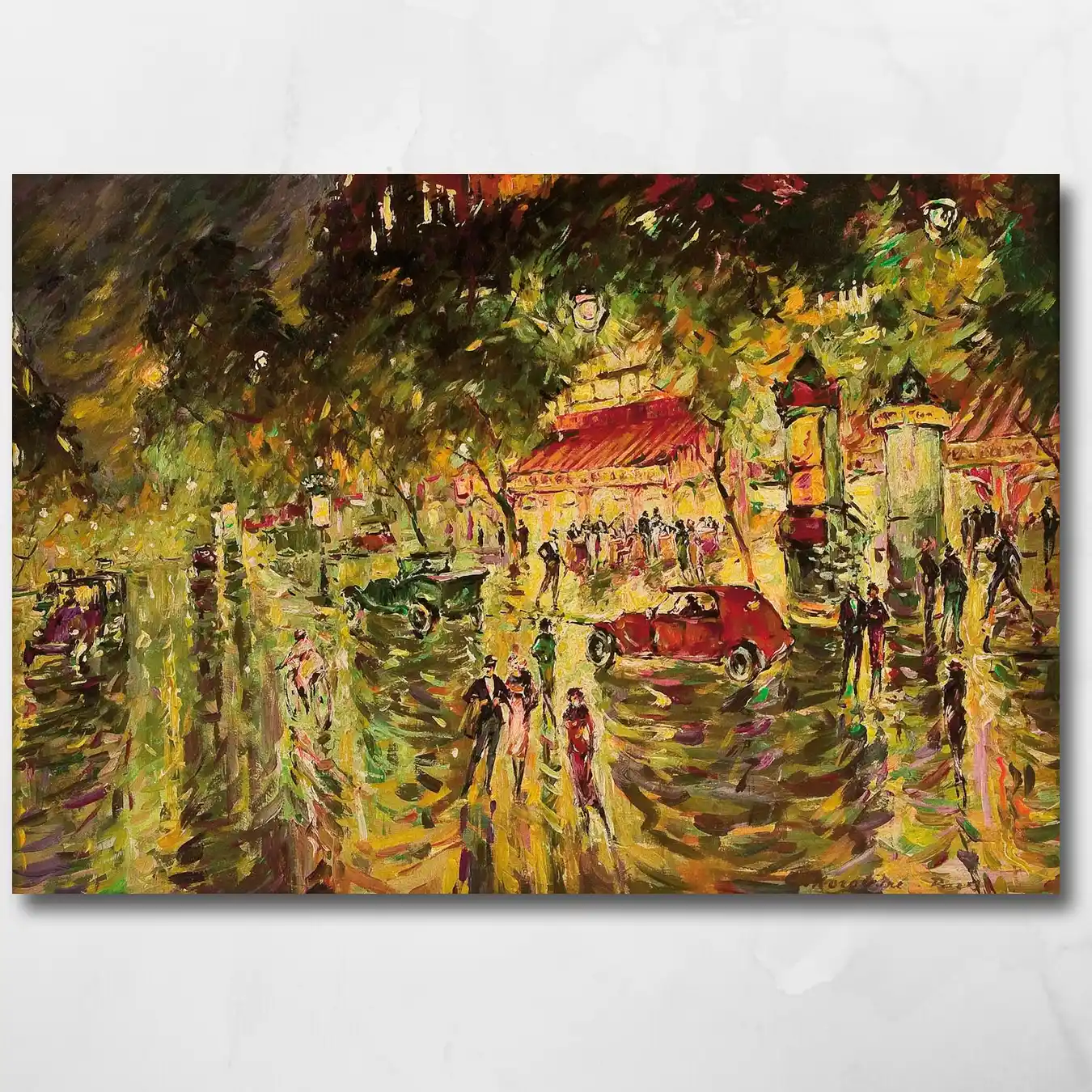 On BAC’s large-format museum-grade canvas, his brushwork crackles with energy. Put this on your wall and the evening never quite ends.