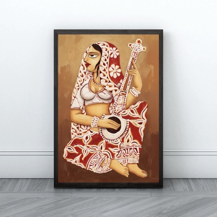 Based on Muzykantka grająca na sitarze (author unknown), courtesy of the Museum of Asia and the Pacific in Warsaw. Licensed under CC BY-SA 4.0. Modified and reinterpreted by Bombay Art Company.