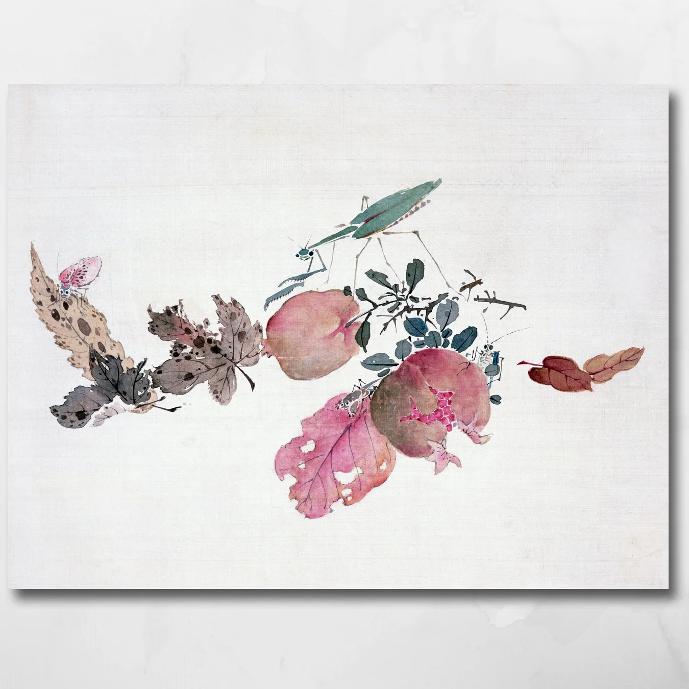 Capturing nature in its abundance, this piece shows the fig tree with some insects, conveying the harmony between flora and fauna.