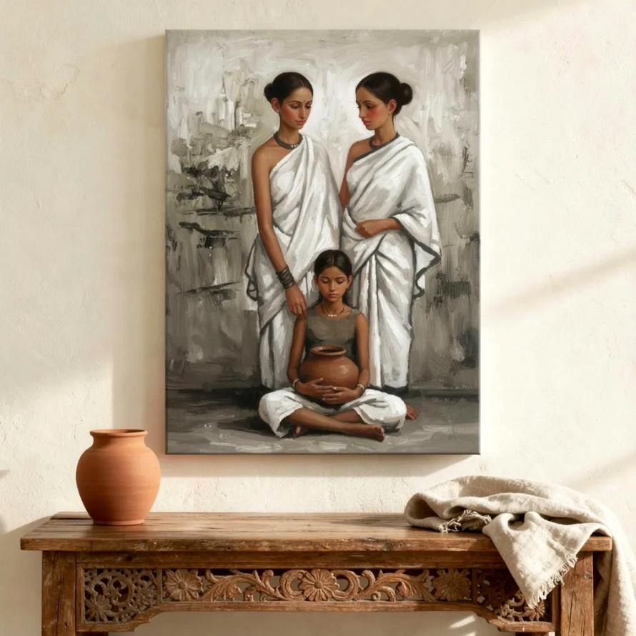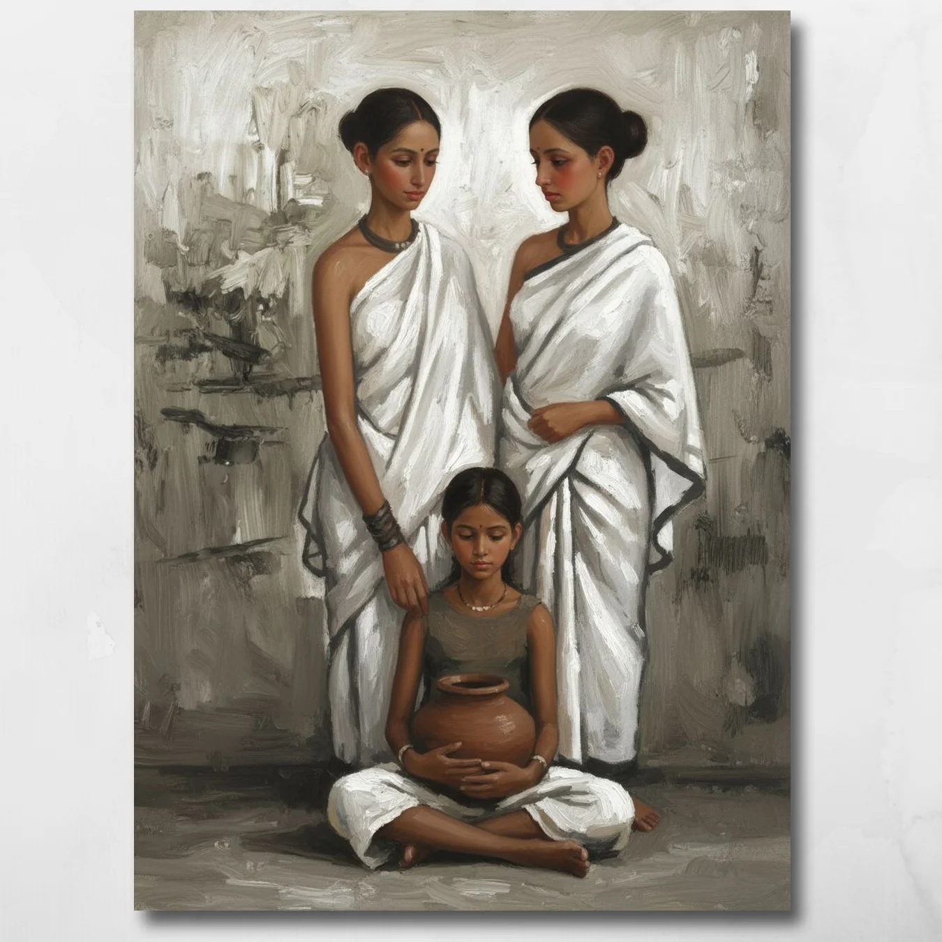 Studio BAC created this artwork as a meditation on that transmission: the quiet inheritance that moves between women across generations, carrying everything that was never written down. The restraint in the palette is intentional — all that feeling, held.