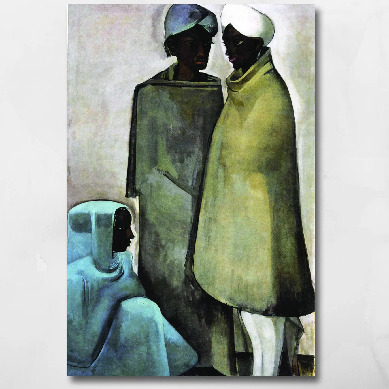 Amrita Sher-Gil had a gift that most painters never develop: she could make stillness feel like a complete story. Hill Men carries the weight of lives lived close to the earth — unhurried, self-contained, asking nothing of you. She painted ordinary Indians at a time when Indian art was still largely preoccupied with gods and royalty, and that choice was radical. On a large BAC canvas, this work brings a quiet, almost meditative authority to any wall it occupies.