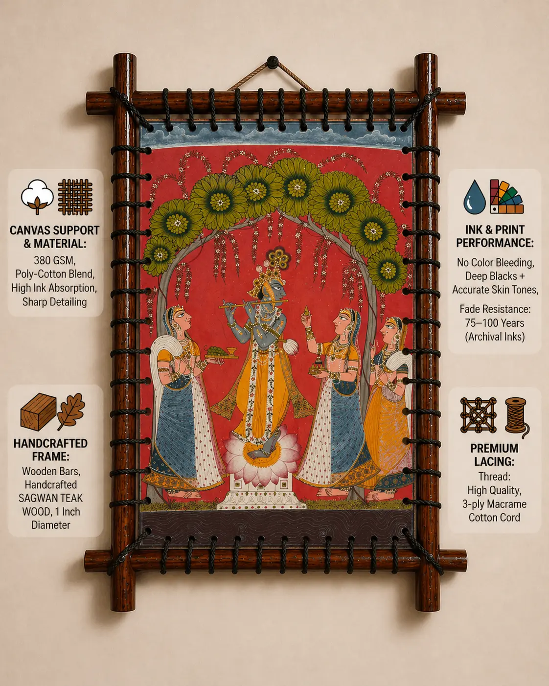 Presented as a BAC canvas installation, the artwork is tension-mounted on solid Sagwan teak. There is no glass, no outer frame — just a clean, handcrafted structure that lets the work stand on its own.