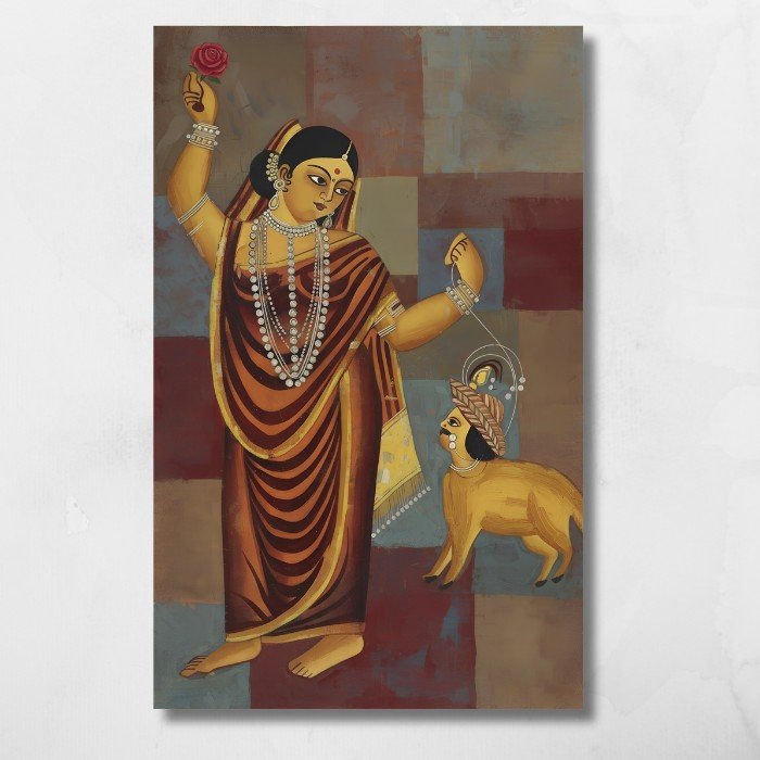 This recreation honours the charm of 19th-century Kalighat folk art—bold, emotional, and deeply rooted in Bengal’s artistic heritage. Restored through thoughtful enhancement, it bridges tradition and modern sensibility, making it ideal for collectors and lovers of Indian art.