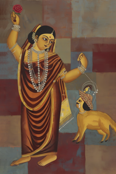 Sheep Lover revives a vintage Kalighat painting, giving new life to a fading masterpiece. The artwork retains the original composition and expressive detailing while reimagining the colours with fresh vibrancy. This recreation honours the charm of 19th-century Kalighat folk art—bold, emotional, and deeply rooted in Bengal’s artistic heritage. Restored through thoughtful enhancement, it bridges tradition and modern sensibility, making it ideal for collectors and lovers of Indian art.
