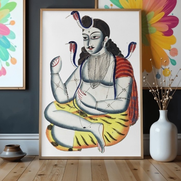 Having a Shiva Kalighat painting in your home can bring a unique blend of artistic beauty and spiritual significance. The Kalighat style, originating from the Kalighat temple in Kolkata, India, is known for its bold lines, vibrant colors, and expressive forms.