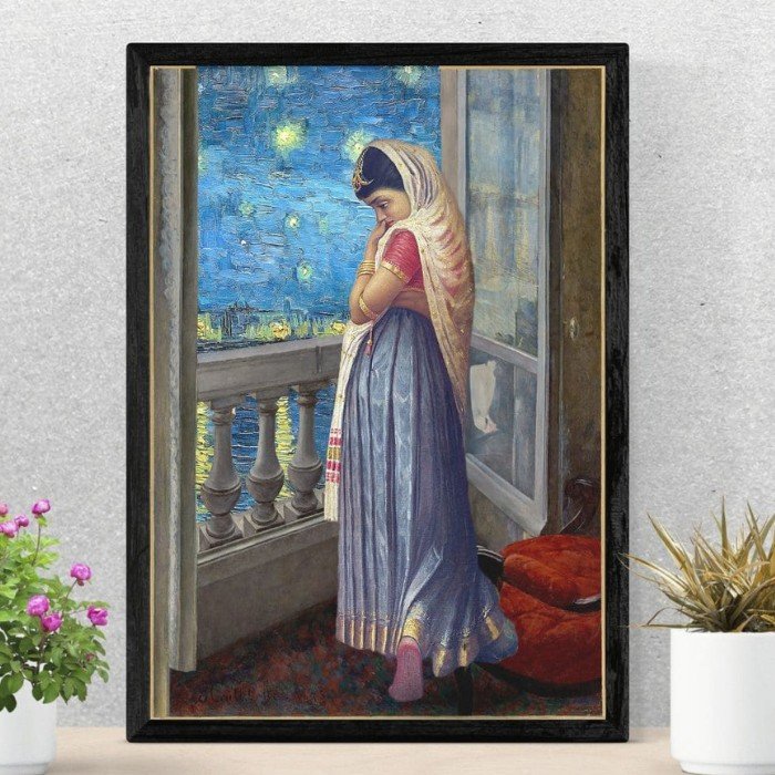 Immerse in dreams with this exclusive digital painting fusing Raja Ravi Varma and Vincent Van Gogh, crafted by Bombay Art Company’s in-house artists.