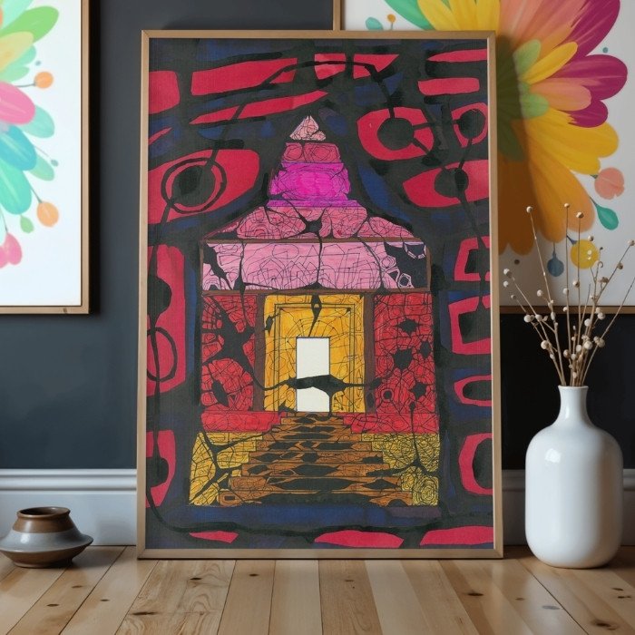 A powerful monochrome work by Alexander Vladimirovich Glukhov, Temple Mountain captures the grandeur of sacred architecture with bold ink and marker strokes. Its geometric rhythm and meditative depth make it a striking centerpiece for modern or traditional interiors alike.