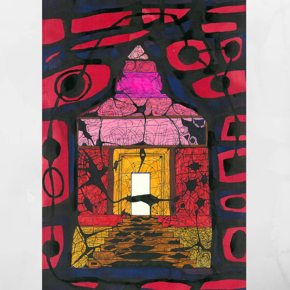 A powerful monochrome work by Alexander Vladimirovich Glukhov, Temple Mountain captures the grandeur of sacred architecture with bold ink and marker strokes. Its geometric rhythm and meditative depth make it a striking centerpiece for modern or traditional interiors alike.