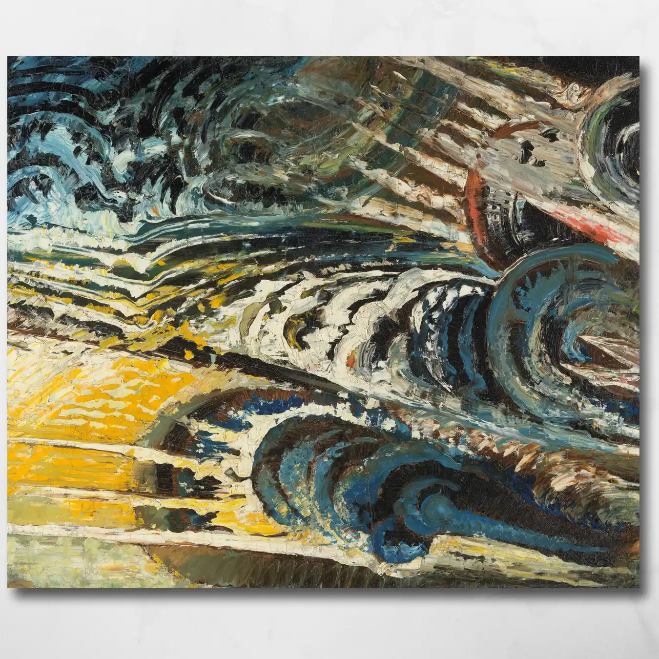 Chris Lanooy was primarily known as a ceramicist — the Dutch art world had filed him neatly under “craft” and largely left him there. Then he painted this, and the filing system broke. The Futurists believed that speed, force, and industrial energy were the new sublime — that the roar of a machine was more honest than a pastoral landscape — and Lanooy took that idea and made it visceral. This isn’t a painting you analyse. It hits you first and explains itself later, if at all. The fact that it carries an attribution question — “attributed to” — only adds to its power: sometimes the most alive things resist being pinned down. On large-format museum-grade canvas, the impasto thickness that makes this composition so raw and physical finally gets the scale to overwhelm you the way it was always meant to.