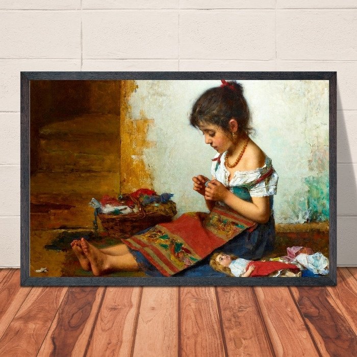 Alexei Harlamov’s The Little Seamstress captures the quiet elegance of everyday life with remarkable delicacy. Celebrated for his luminous portraits and refined brushwork, Harlamov renders lifelike textures—the softness of skin, the shimmer of fabric, and the calm dignity of his subjects.