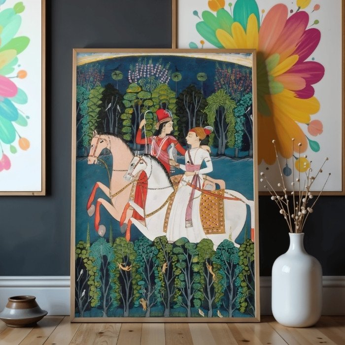 This art form enthrals with vibrant hues and intricate details, echoing tales of India’s majestic past.