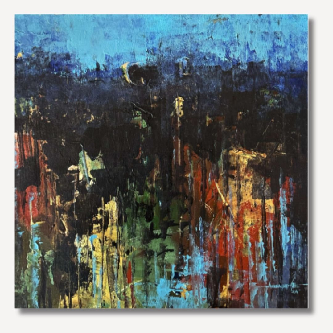 His paintings bring balance, energy, and refined sophistication to contemporary spaces. Every canvas reflects his distinct voice in modern Indian abstraction.