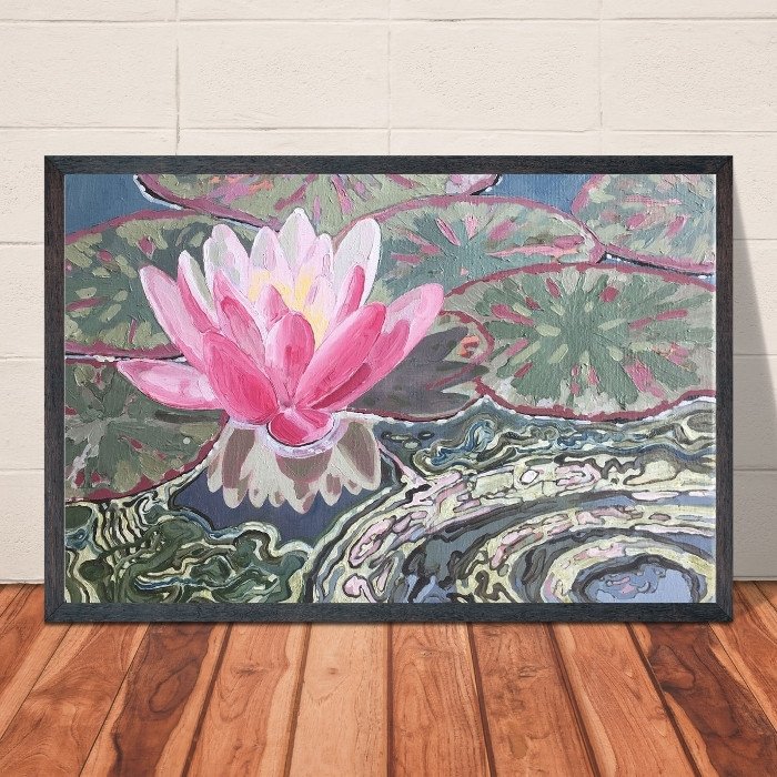 Whether you choose to place it in your living room, bedroom, or even a cozy reading nook, this water lily painting is more than a mere decorative piece – it’s a transformative work of art that amplifies the very essence of your living space, inviting you to lose yourself in the enchanting world of nature’s beauty.